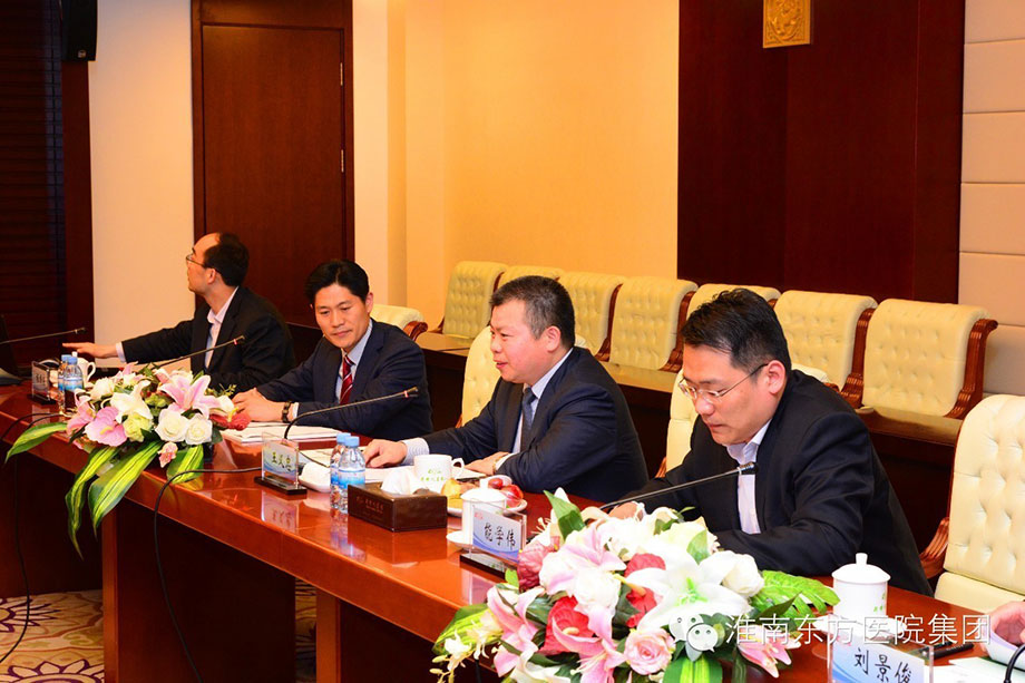 實地參觀之后,雙方進行了廣泛深入的溝通交流。王總介紹到,魯南制藥是科技部認定的國家重點高新技術企業,是一個充滿進取活力的企業。隨后,江董事長就東方醫院集團及康寶藥業的發展狀況進行了詳細的介紹,并對雙方下一步深入合作提出了建設性意見。