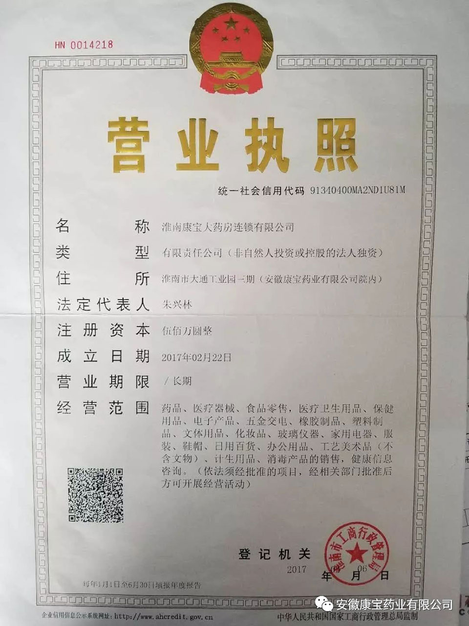 2月22日,安徽康寶藥業(yè)有限公司順利領(lǐng)取康寶連鎖藥店?duì)I業(yè)執(zhí)照,標(biāo)志著公司下屬淮南康寶大藥房連鎖有限公司正式成立。