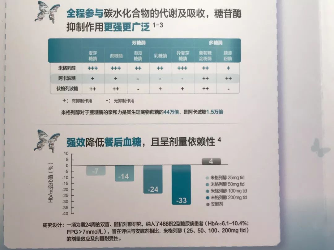 而米格列醇片作為第三代α-糖苷酶抑制劑,在國內(nèi)臨床使用過程中經(jīng)實踐證明,它的藥效明顯優(yōu)于阿卡波糖和伏格列波糖,并且較以上兩種產(chǎn)品減少了胃腸反應(yīng),也大大降低了口服不適感,尤其在用藥細節(jié)方面也貼切的考慮到了老人患者由于年齡大,經(jīng)常忘記吃藥這一現(xiàn)象,米格列醇片不僅可以餐前服用,在餐后三十分鐘內(nèi)口服依然可以達到血藥濃度,保持藥效,深受廣大中老年患者的好評!