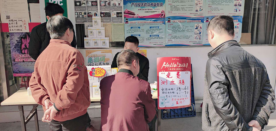 為了回饋新老顧客,藥店免費(fèi)開展骨密度檢測及血糖、血壓檢測。