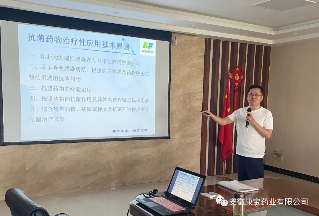 為進一步提升員工的藥學專業水平和服務能力,康寶藥業于近日開展了《抗菌藥物合理使用》專題培訓,由總經理孫華斌進行現場授課,公司各部門及藥店人員參加了培訓。