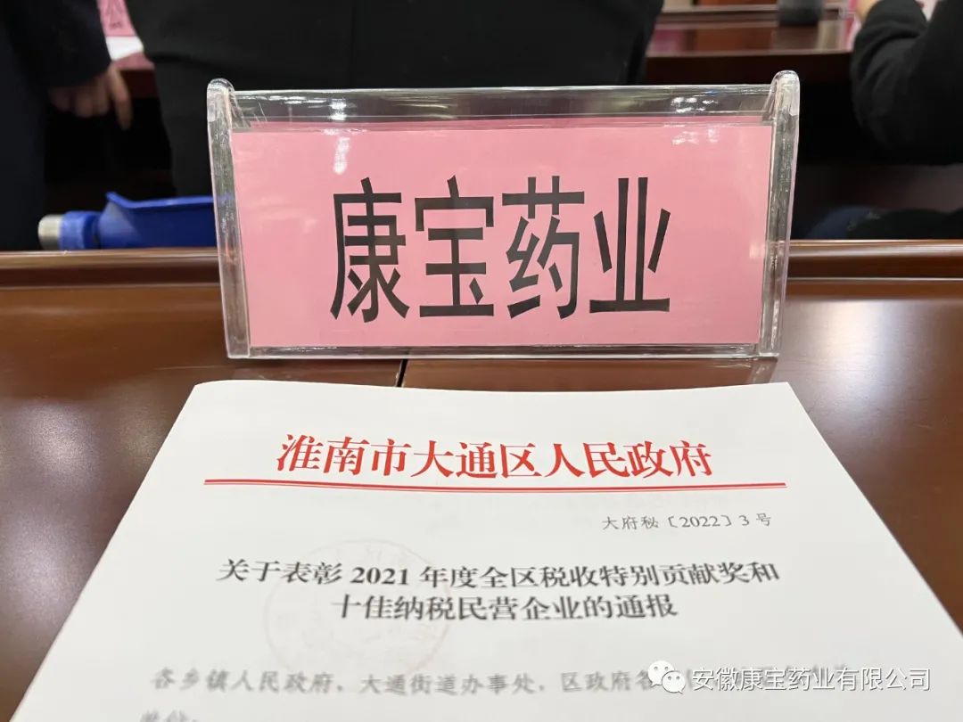康寶藥業榮獲“2021年度大通區民營企業納稅獎”